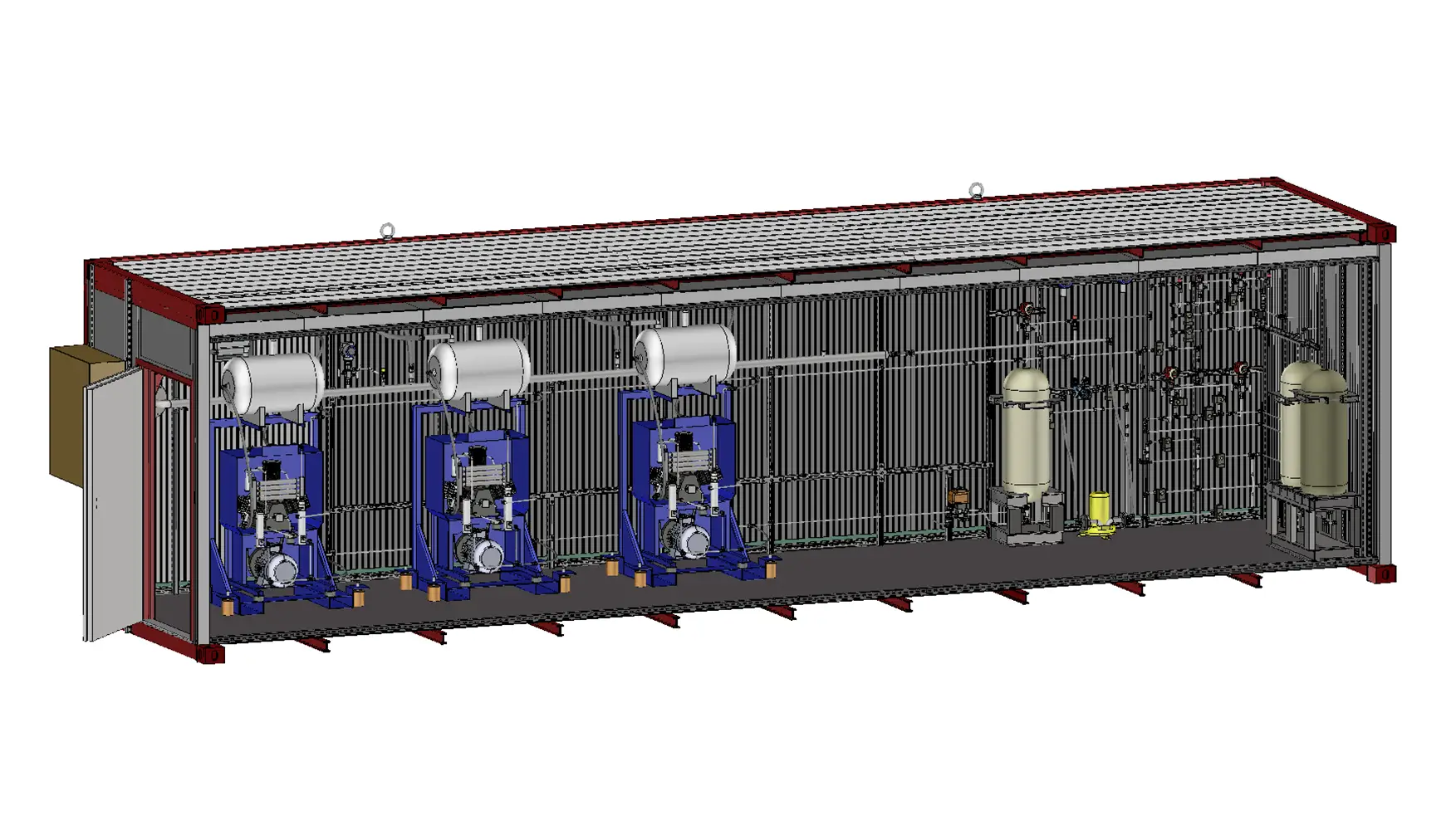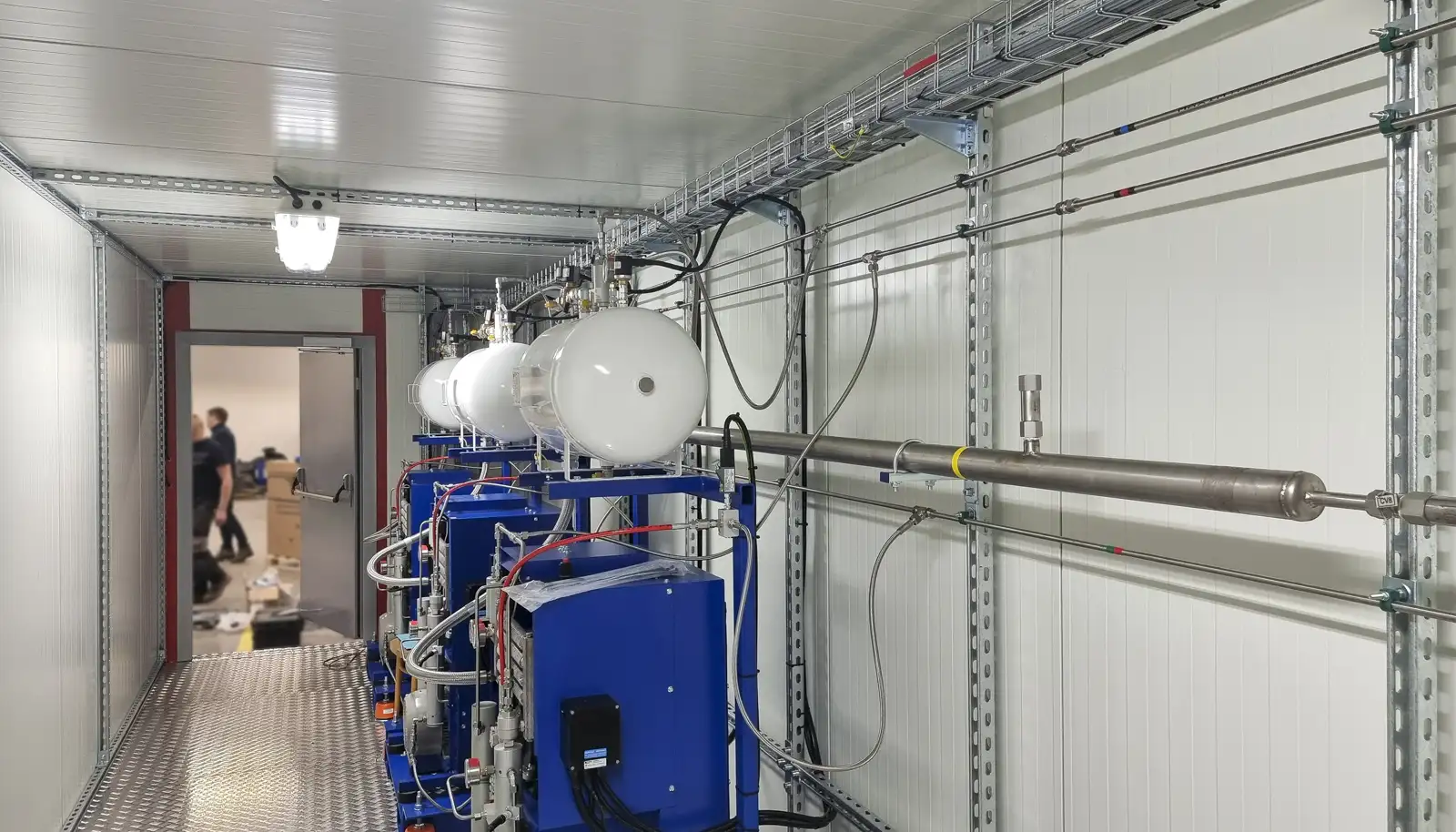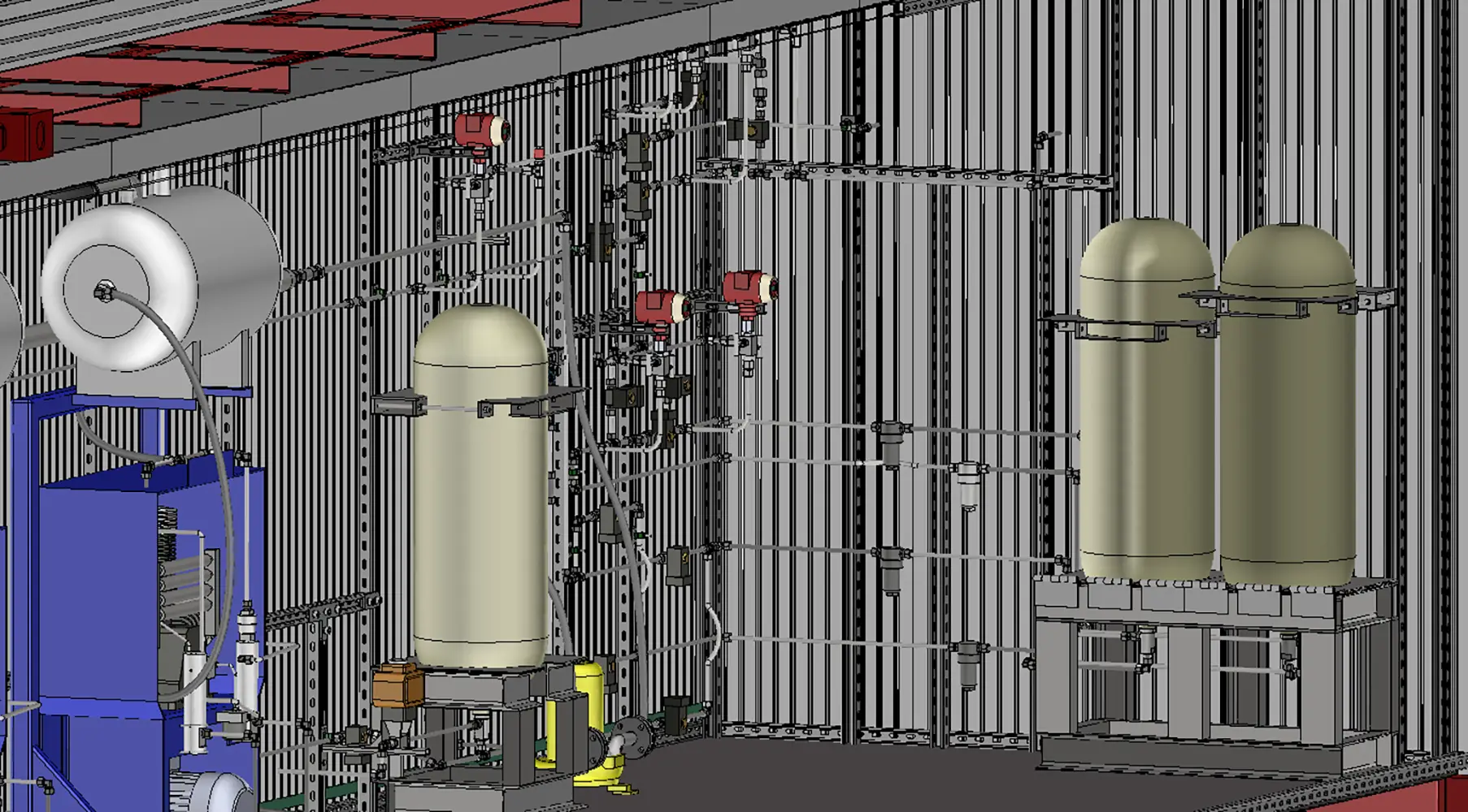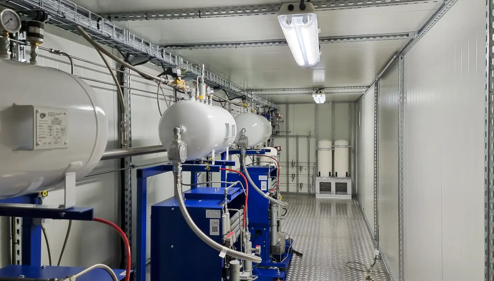 Obě frakce jsou skladovány ve svazku vysokotlakých lahví při tlaku 200 bar, umístěných v bezprostřední blízkosti kontejneru. Celý kontejner je vyroben v provedení ATEX.