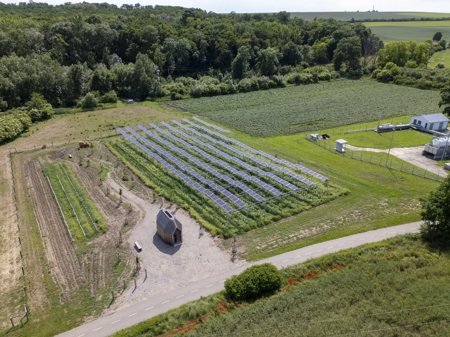 Projekt vznikl na rekultivovaném pozemku po těžební činnosti v obci Starý Poddvorov na Hodonínsku a kombinuje výrobu elektřiny s pěstováním vinné révy odrůd Ryzlink rýnský a Donauriesling.