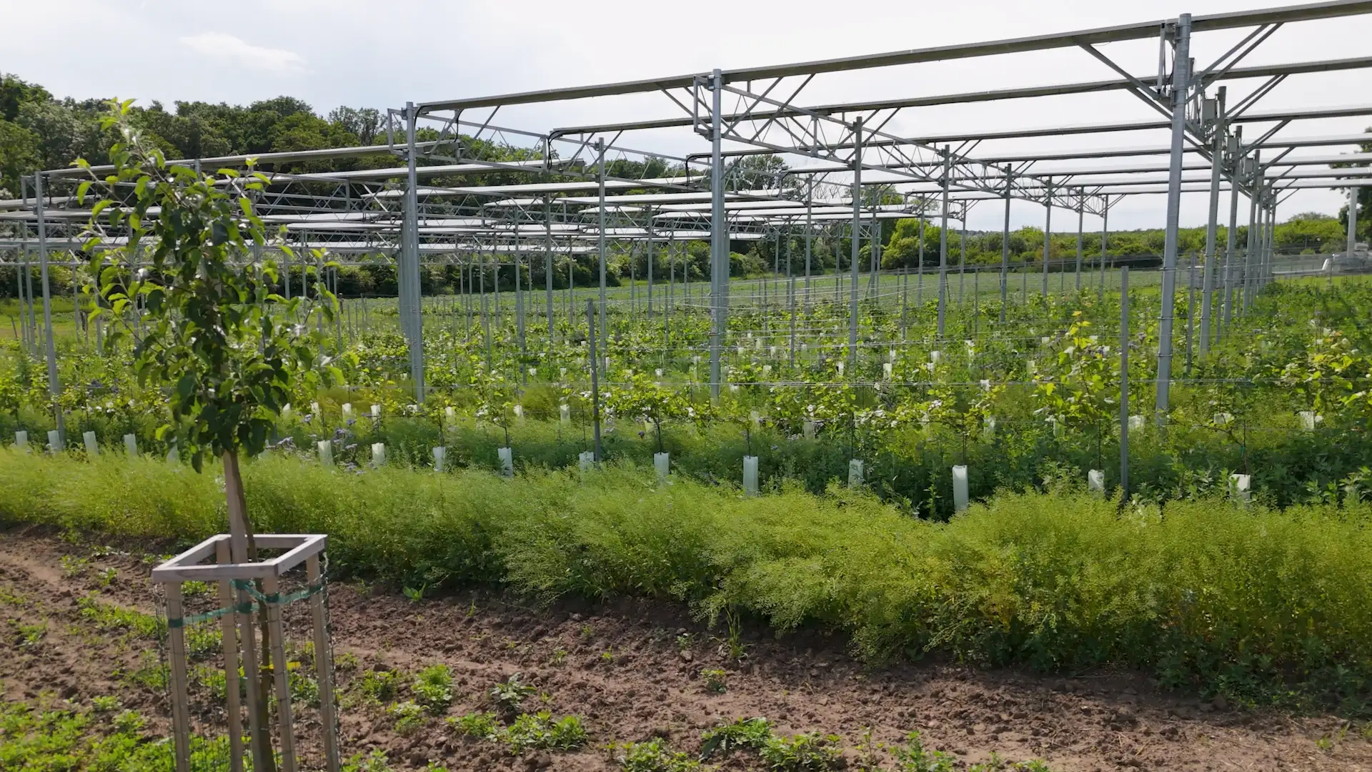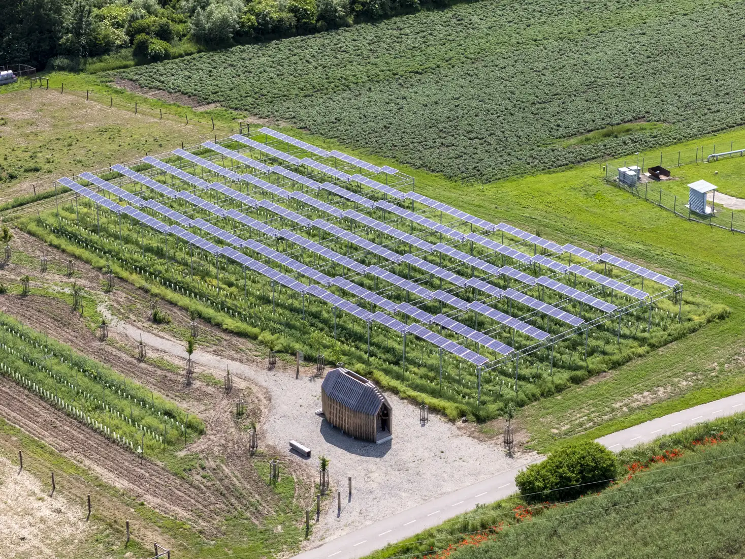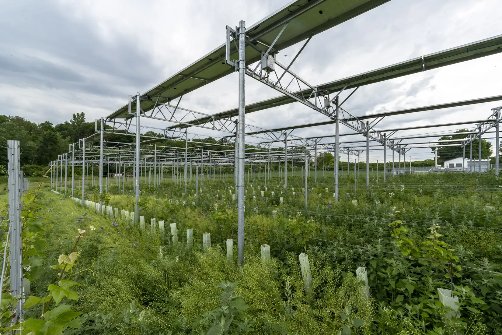 Pod fotovoltaickou konstrukcí bylo vysázeno 1 555 sazenic vinné révy odrůd Ryzlink rýnský a Donauriesling. O vinici pečuje místní vinohradník. Panely chrání révu před přímým sluncem a extrémními povětrnostními vlivy.